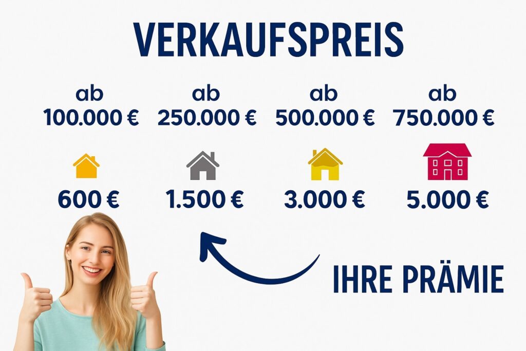 Kennen Sie jemanden, der seine Immobilie verkaufen möchte? Dann teilen Sie uns diesen wertvollen Hinweis mit – und verdienen Sie dabei bares Geld! Wir belohnen Ihren Tipp mit einer attraktiven Tippgeberprämie von bis zu 20 % unserer Maklerprovision.